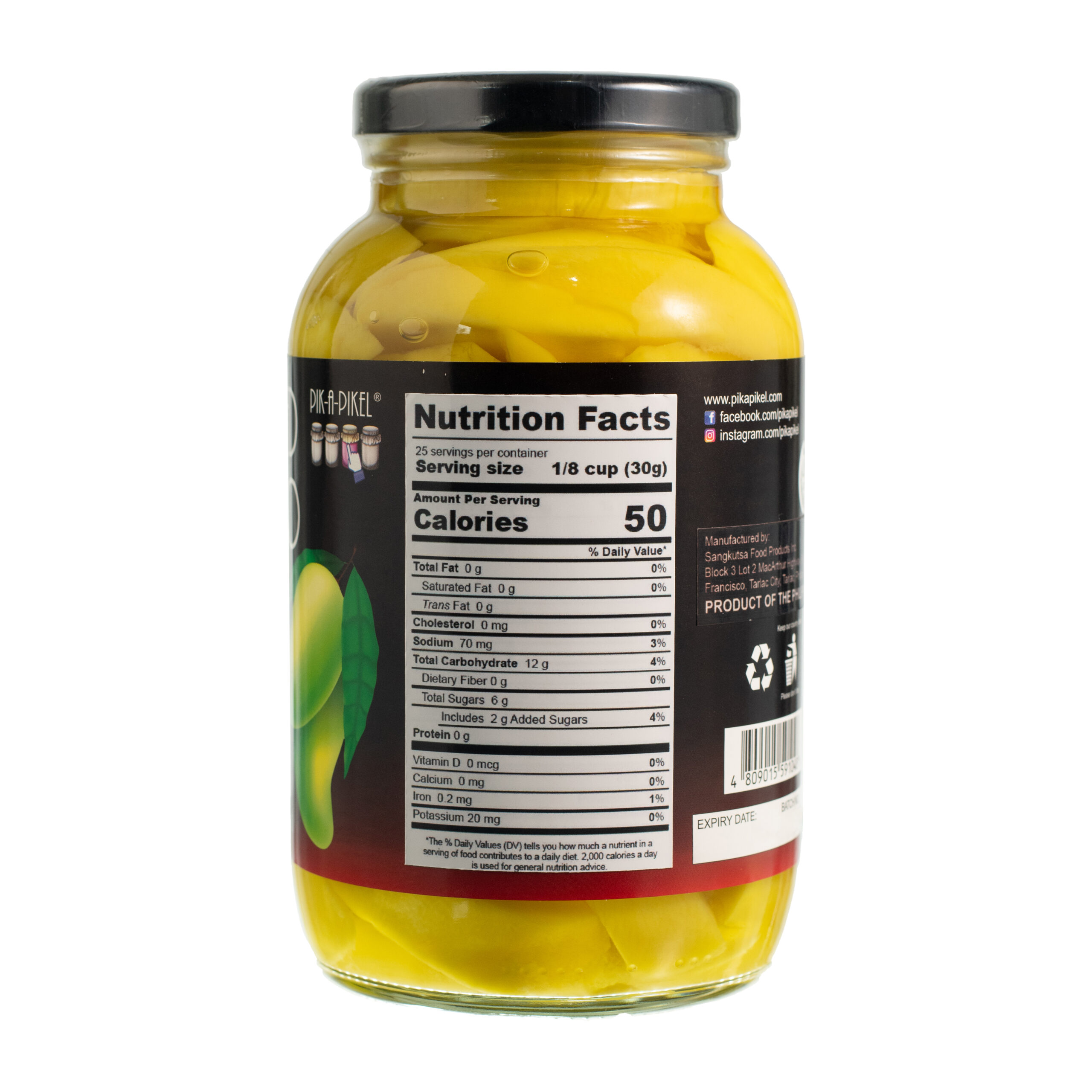 Fresh Green Mangoes, Iodized Salt, Sugar, Water, Black Peppercorn, Sodium Metabisulfite, Tartrazine as food color,